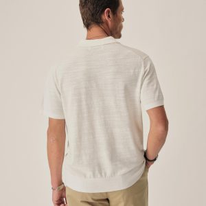 Classic fit sweater polo in yarn-dyed 16 gauge cotton jersey with light slub texture. Features a three-button closure and rib finishing at the cuffs and hem. Constructed with hand-linked seams for improved durability.