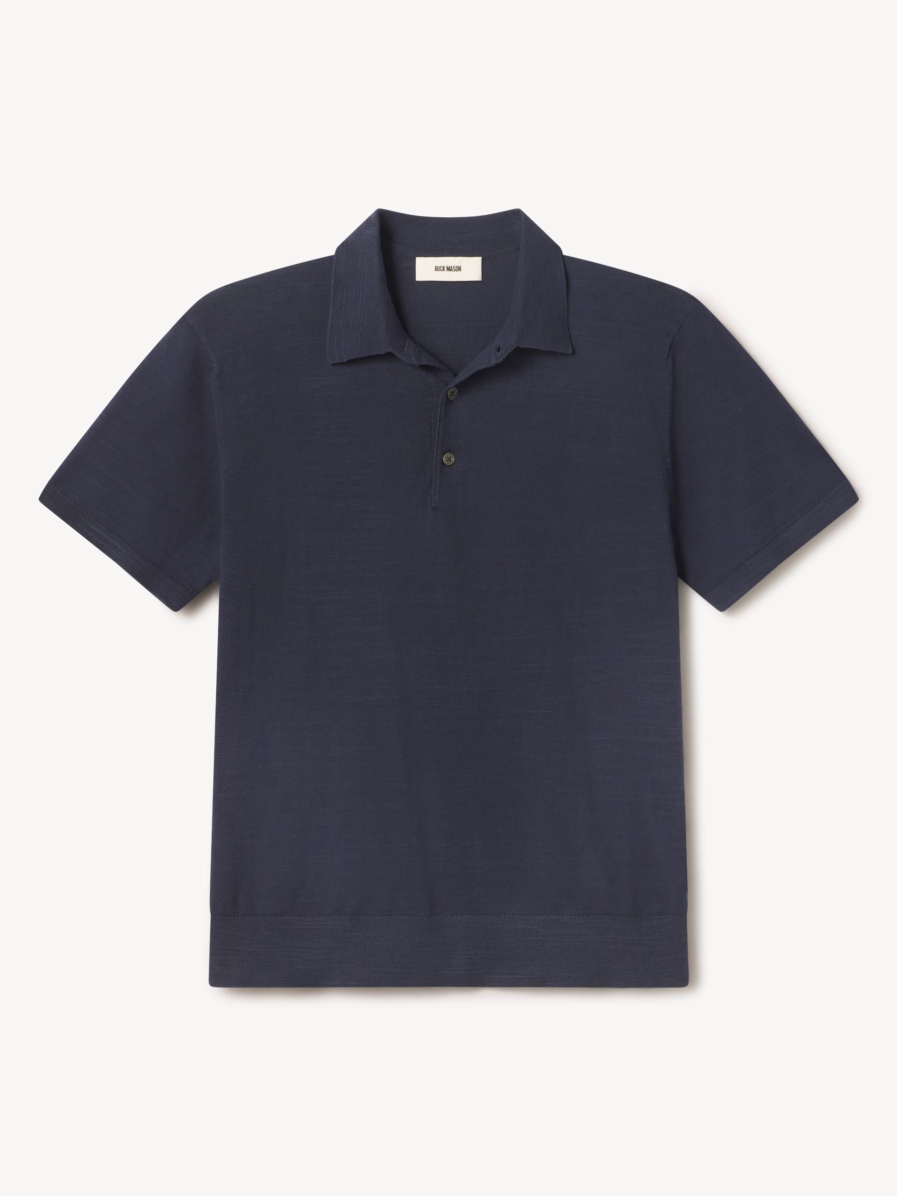 Classic fit sweater polo in yarn-dyed 16 gauge cotton jersey with light slub texture. Features a three-button closure and rib finishing at the cuffs and hem. Constructed with hand-linked seams for improved durability.