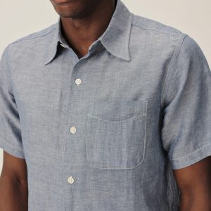 The quintessential short sleeve button-up in a classic fit inspired by a 1940s uniform shirt from our archives. Cut from a lightweight cotton linen blend with a breathable open weave. Details include a perfectly-proportioned point collar, a single chest pocket, and a curved hem.