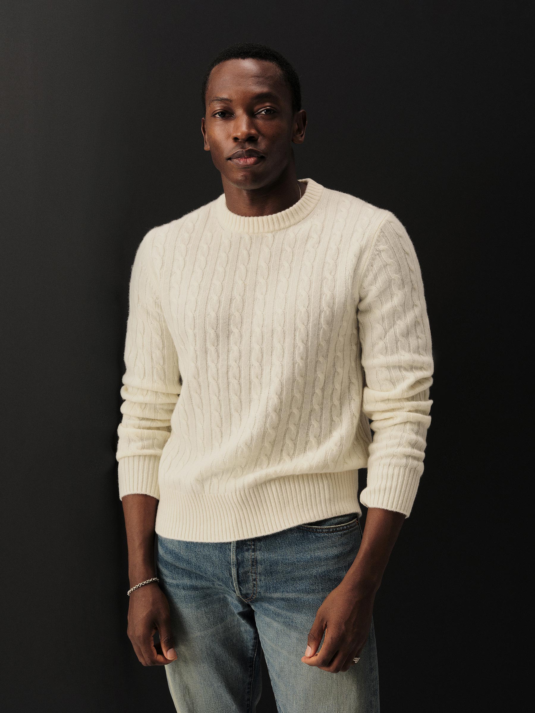The California Cashmere Cable Crew is spun from 100% long-staple cashmere and knit in a refined 12-gauge cable pattern. Inspired by the casual poise of 1960s Ivy League sweaters, it’s finished with yarn-dyed ribbing at the neck, cuffs, and hem, and garment-rinsed for a soft, lived-in feel.
