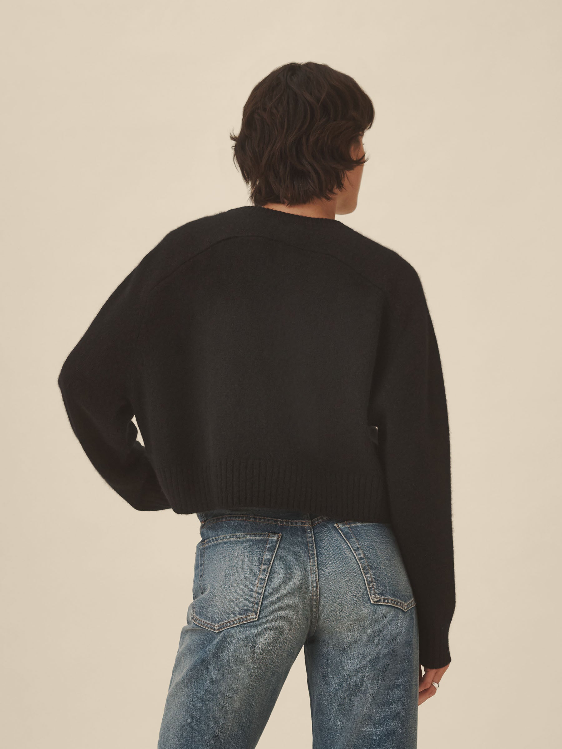 A cozy crewneck crafted from 100% cashmere in a soft jersey stitch. Designed with a boxy, oversized silhouette and saddle-shaped armholes, and finished with ribbed trims at the neckline, cuffs, and hem.