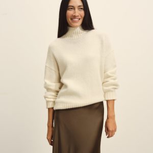 A cozy crewneck crafted from 100% cashmere in a soft jersey stitch. Designed with a boxy, oversized silhouette and saddle-shaped armholes, and finished with ribbed trims at the neckline, cuffs, and hem.