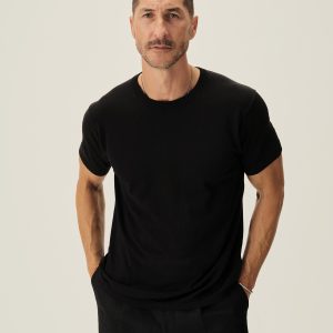 A fully fashioned tee that draws inspiration from the lifestyle surrounding Lake Como in the 1960s. Knit from an ultrafine blend of yarn-dyed organic Egyptian cotton and cashmere, spun in Italy. Featuring tubular finishes at the cuffs and bottom hem, and a shallow sleeve cap.