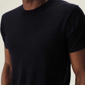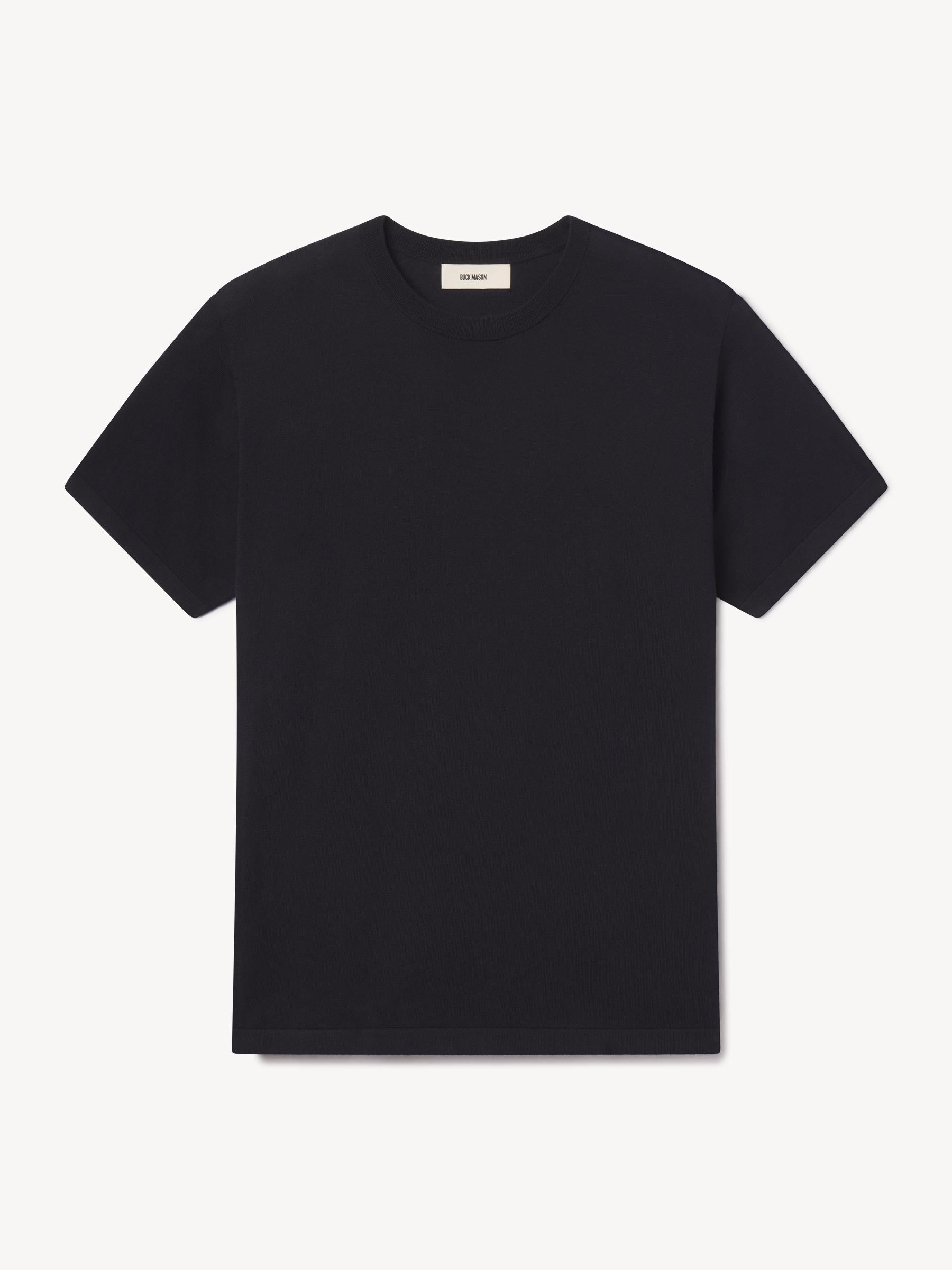 A fully fashioned tee that draws inspiration from the lifestyle surrounding Lake Como in the 1960s. Knit from an ultrafine blend of yarn-dyed organic Egyptian cotton and cashmere, spun in Italy. Featuring tubular finishes at the cuffs and bottom hem, and a shallow sleeve cap.