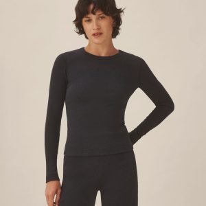 Slim fit crewneck sweater in a 24″” length, elevated in a 14 gauge variegated rib knit from a blend of merino wool, silk, and cashmere. Luxe, easy, and ideal for layering. Constructed with self-starting hem and sleeve trim and fashioning at the neckline and back shoulder for durability.