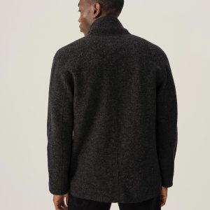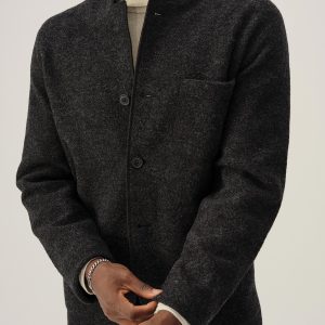 Classic fit chore coat with a slimmer cut through the arms and room in the torso for layering. This 340 GSM felted merino wool has been twice boiled for improved insulation and durability. Details include three patch pockets, real horn buttons, and a notch collar. Constructed with hand-sewn facings and cover-stitching throughout.