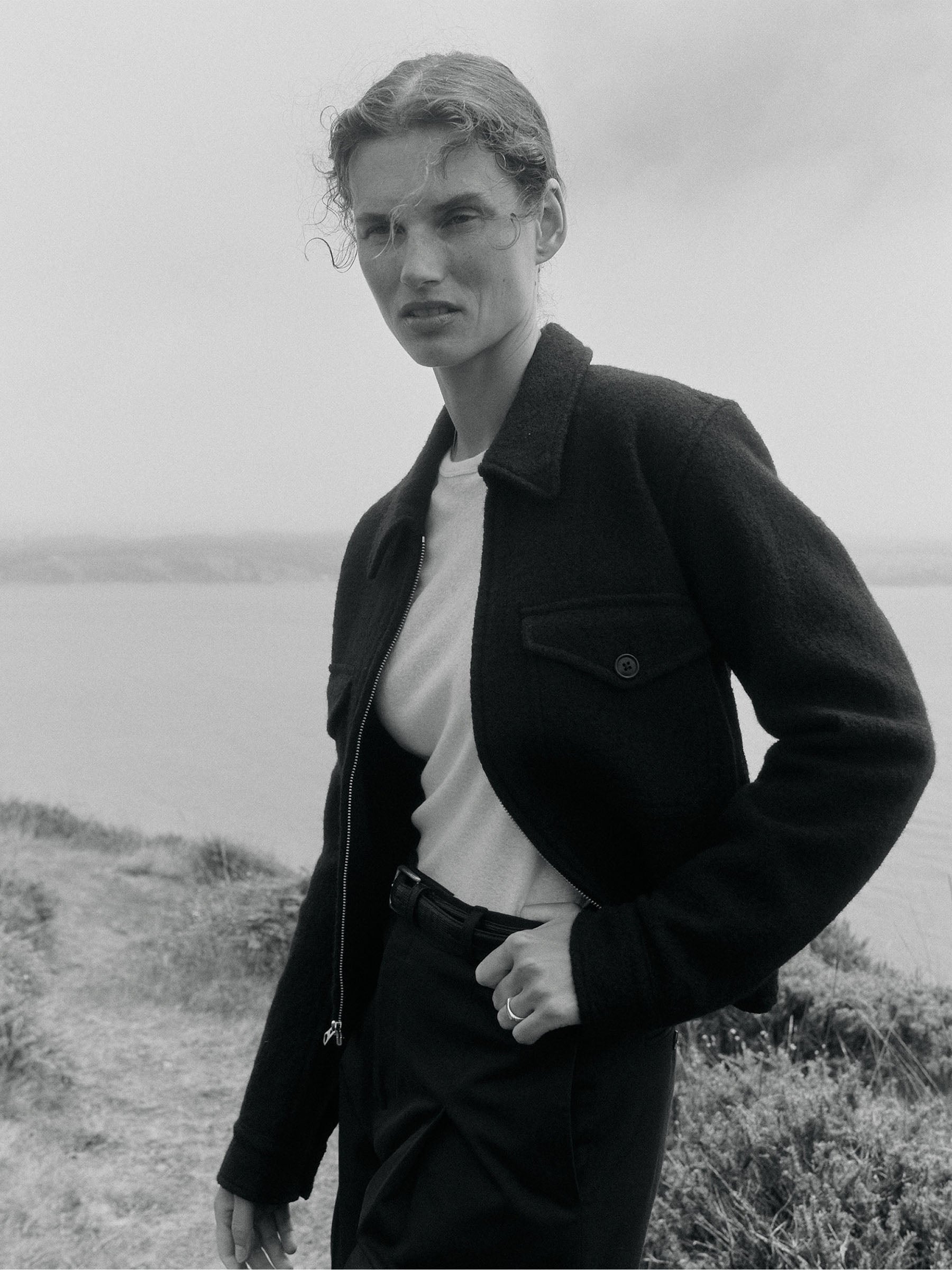 Relaxed utility jacket inspired by vintage mechanic uniforms. Cut from structured 340 GSM felted merino wool, twice boiled for improved insulation and durability. Details include a zipper front, chest pockets, and button-through cuffs. Back tabs can be adjusted for a more fitted waist.