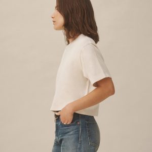 Cut from a heavyweight 310 GSM cotton, this slightly oversized, boxy crewneck tee has a straight hemline that hits right at your natural waist. Double-washed for a soft, smooth texture and consistent fit.