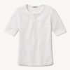 Military-inspired short sleeve henley, crafted from a superfine blend of new and recycled cotton with a subtle, textured rib. Featuring a three-button loop placket and sleeve cuffs. Finished with mother of pearl buttons and garment washed for a lived-in feel.
