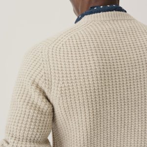 Classic crewneck waffle-knit from 5 gauge wool: a chunky, substantial yarn that’s soft to the touch. 95% Merino wool for warmth and durability, rounded out with 5% cashmere for added smoothness. The result: all the warmth, zero itch. Saddle shoulder for a comfortable fit with rib fashioning on the collar, cuffs, and hems.