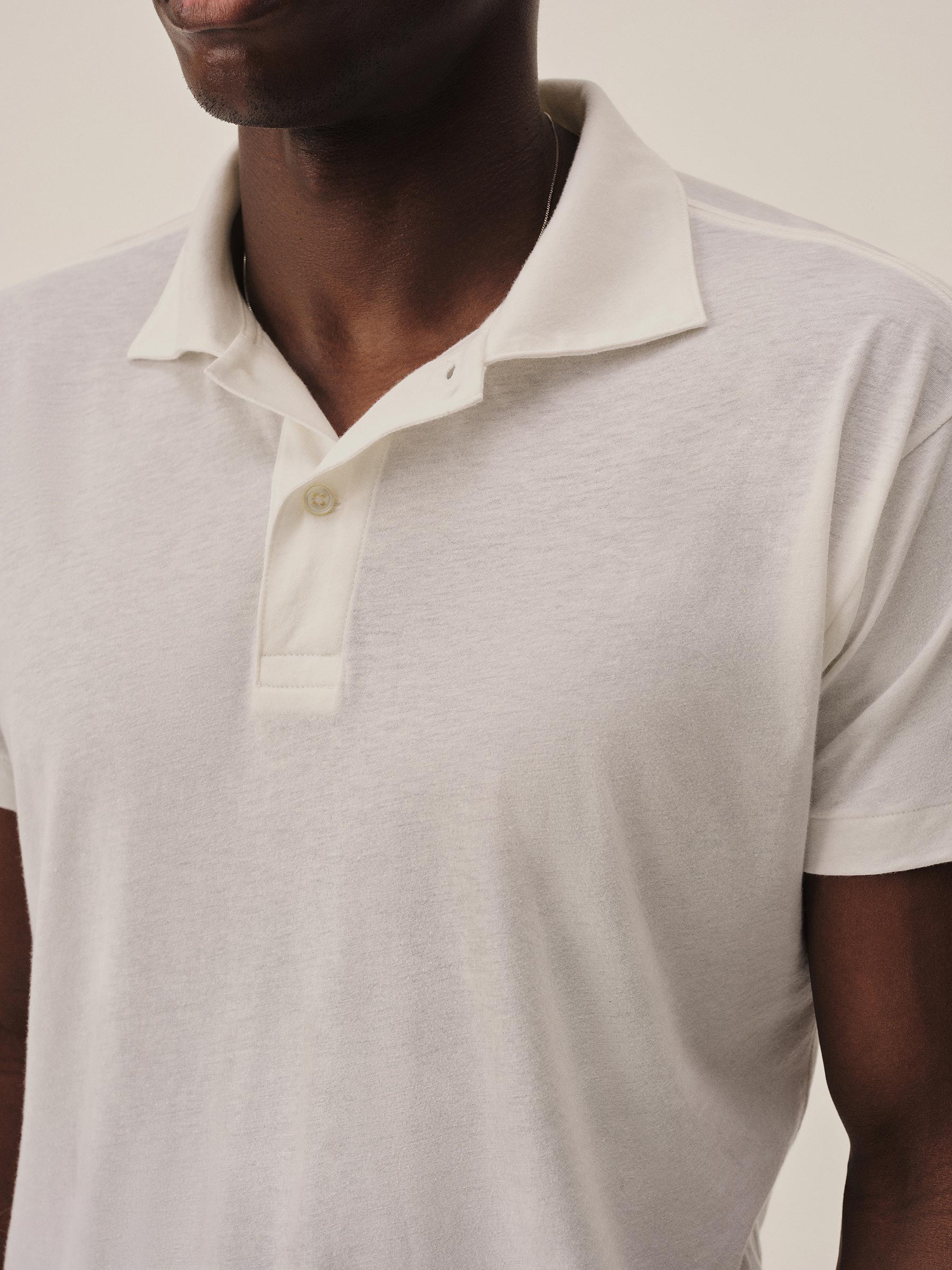 Classic fit polo crafted from a custom, superfine 56 singles blended cotton-linen yarn, spun and knit exclusively in Japan. This fabric is designed to combine the smoothness of a premium yarn with the subtle texture of something more rugged. The result is a polo that’s smooth, cool, and light as air, with a subtle silky hand feel. Finished with blind hems at the sleeves and bottom, a two-button mitered placket, overlocked seams, seam tape binding, and neck binding for reinforcement.