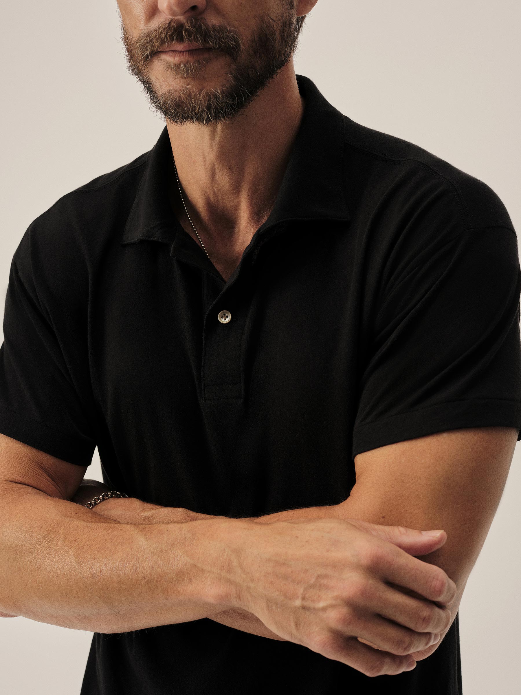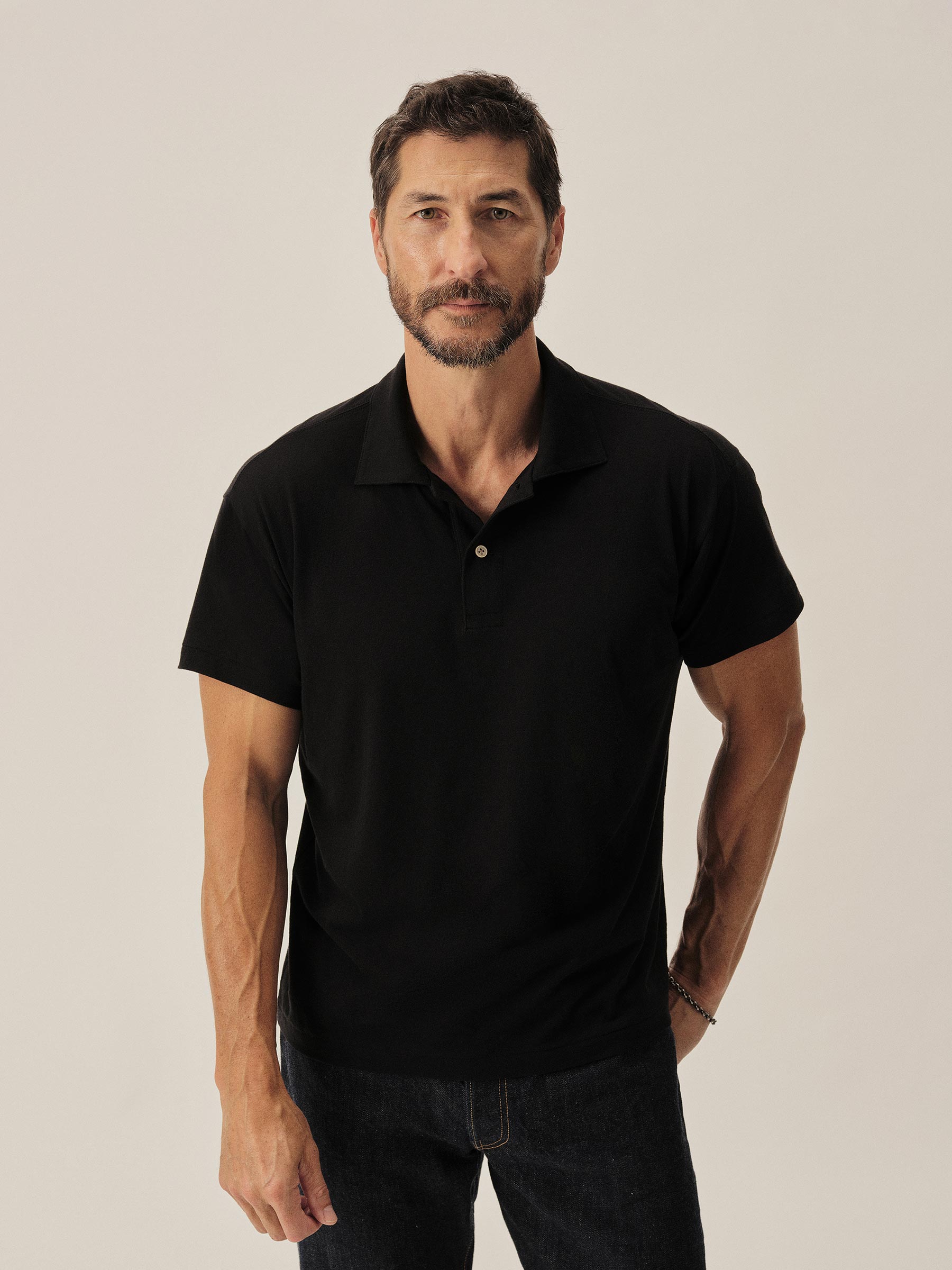 Classic fit polo crafted from a custom, superfine 56 singles blended cotton-linen yarn, spun and knit exclusively in Japan. This fabric is designed to combine the smoothness of a premium yarn with the subtle texture of something more rugged. The result is a polo that’s smooth, cool, and light as air, with a subtle silky hand feel. Finished with blind hems at the sleeves and bottom, a two-button mitered placket, overlocked seams, seam tape binding, and neck binding for reinforcement.