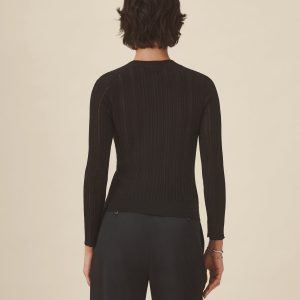 A slim henley crafted from a crepe wool-cotton blend yarn with natural texture and breathability. Designed with a flattering crew-meets-henley neckline, it’s constructed with a delicate pointelle drop-needle stitch throughout the body, functional mother-of-pearl shell buttons, and rib finishes at the cuffs and hem.
