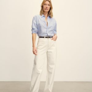 Relaxed button-down shirt in 3.7 oz. cotton plainweave. 29.5” length hits just below the hip. Details include a back yoke with box pleat, a single spade pocket, and pleated cuffs. Inspired by mid-century men’s shirting, this piece can be worn on its own, layered over a tee, or paired with our Rider Pant. Garment washed with softener for a lived-in feel.