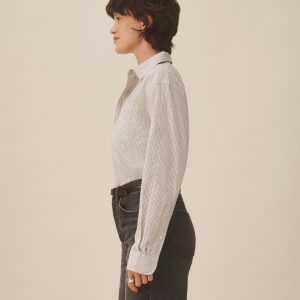 Relaxed button-down shirt in 3.7 oz. cotton plainweave. 29.5” length hits just below the hip. Details include a back yoke with box pleat, a single spade pocket, and pleated cuffs. Inspired by mid-century men’s shirting, this piece can be worn on its own, layered over a tee, or paired with our Rider Pant. Garment washed with softener for a lived-in feel.
