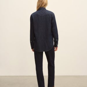 Inspired by vintage western shirting, our take has utility-style details like an angled front yoke, a back yoke, flap pockets, cuffs, and contrast stitching. Made from light and drapey 8 oz denim with an irregular raised nep texture, it’s finished with Japanese pearl snaps and garment washed for a lived-in feel.