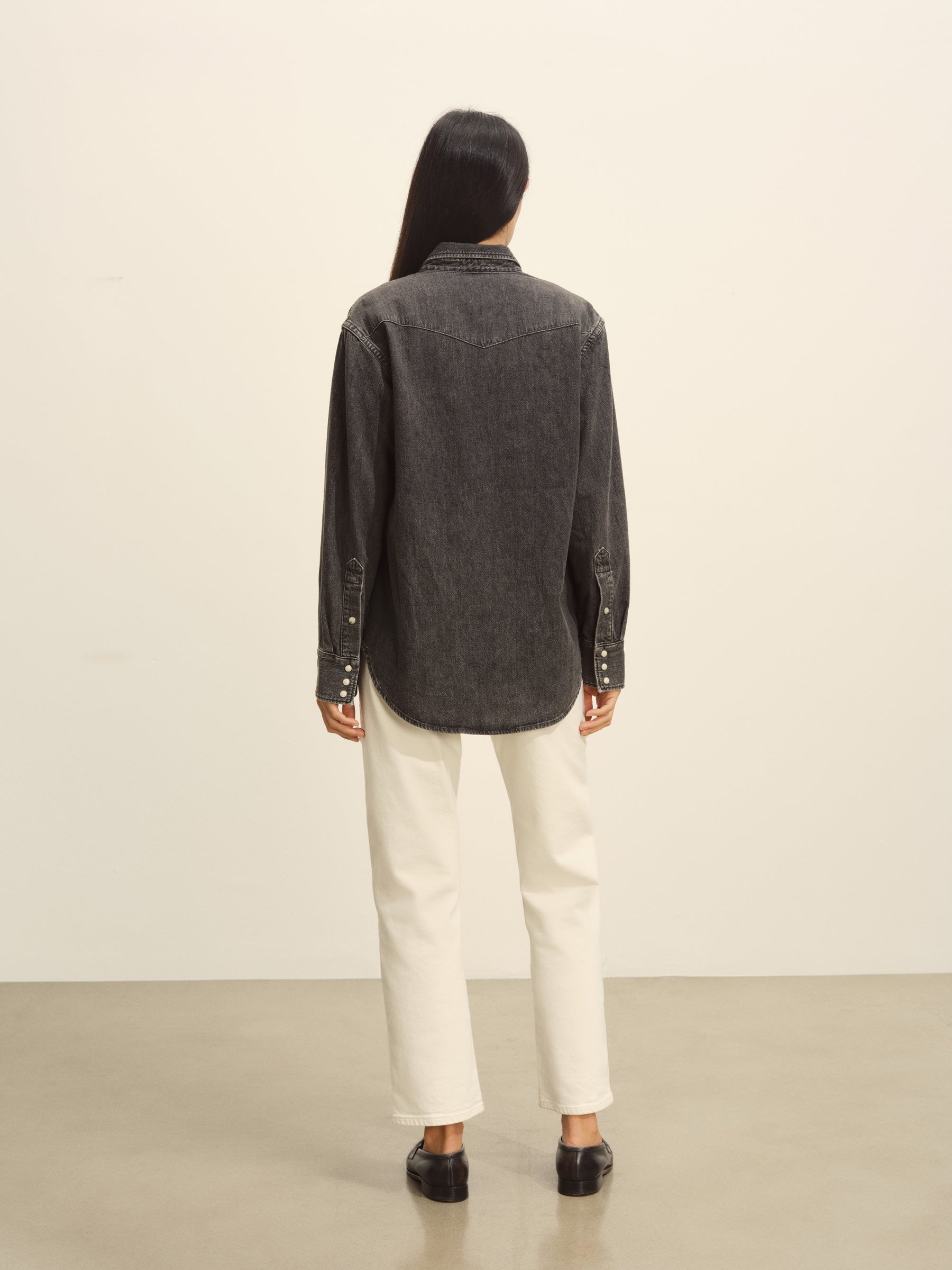 Inspired by vintage western shirting, our take has utility-style details like an angled front yoke, a back yoke, flap pockets, cuffs, and contrast stitching. Made from light and drapey 8 oz denim with an irregular raised nep texture, it’s finished with Japanese pearl snaps and garment washed for a lived-in feel.