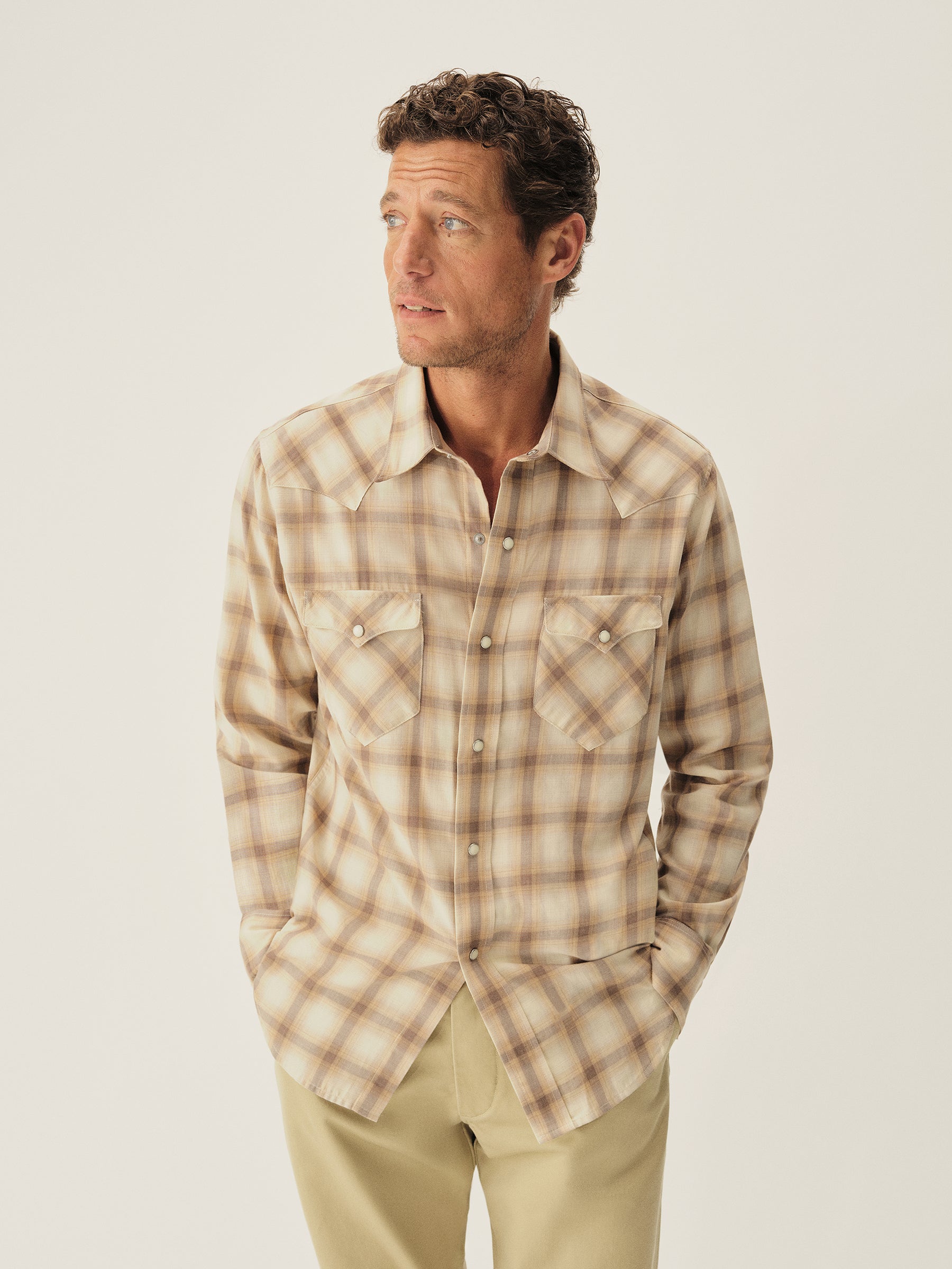 In the spirit of the ol’ Palomino, a classic fit western style shirt made from a springweight blend of cotton and wool, ideal for warm climates. The shirt has all the cowboy details like pearl snaps, a classic pointed yoke, five point pockets with pointed pocket flaps.