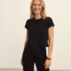 Boxy short sleeve crewneck tee with a straight hem. Cut from 120 GSM Supima cotton. Constructed with rib neck binding and double-needle cover-stitching at the hem. Garment washed for a lived-in feel.
