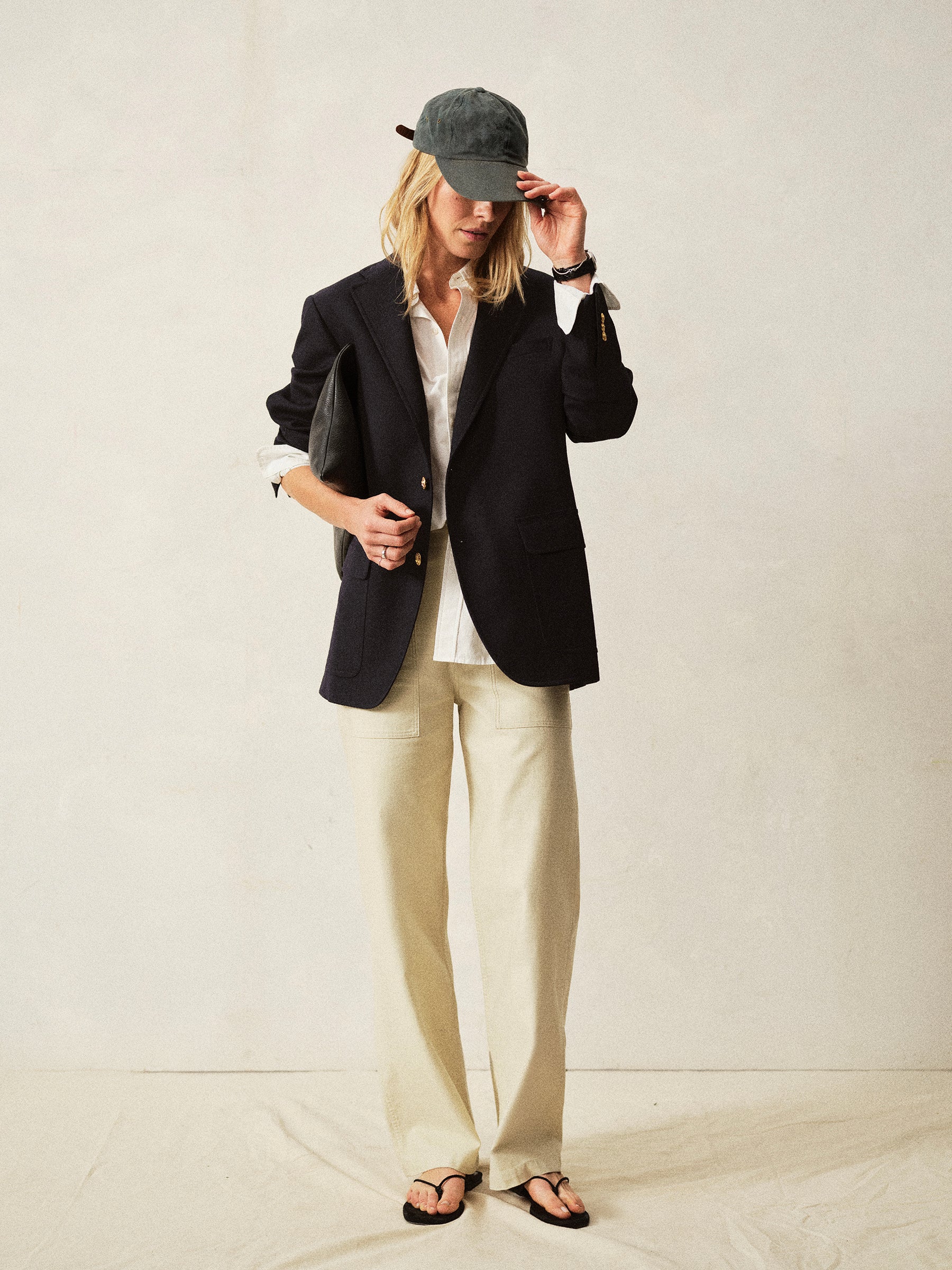 Relaxed fatigue pant with a 32” inseam and a classic high-waist that sits above the navel. Cut from 8 oz cotton reverse sateen with a streamlined Hollywood waistband with a full leg from the thigh down. Features two front patch pockets, two patch and flap back pockets, corozo buttons, and a button fly. Garment dyed and washed with softener for a lived-in feel.