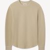 Classic fit crewneck sweater in a homespun textured cotton rib. Constructed with hand-linked seams, double layer ribbing at the collar, and racking stitch detailing at the cuffs.