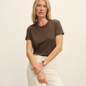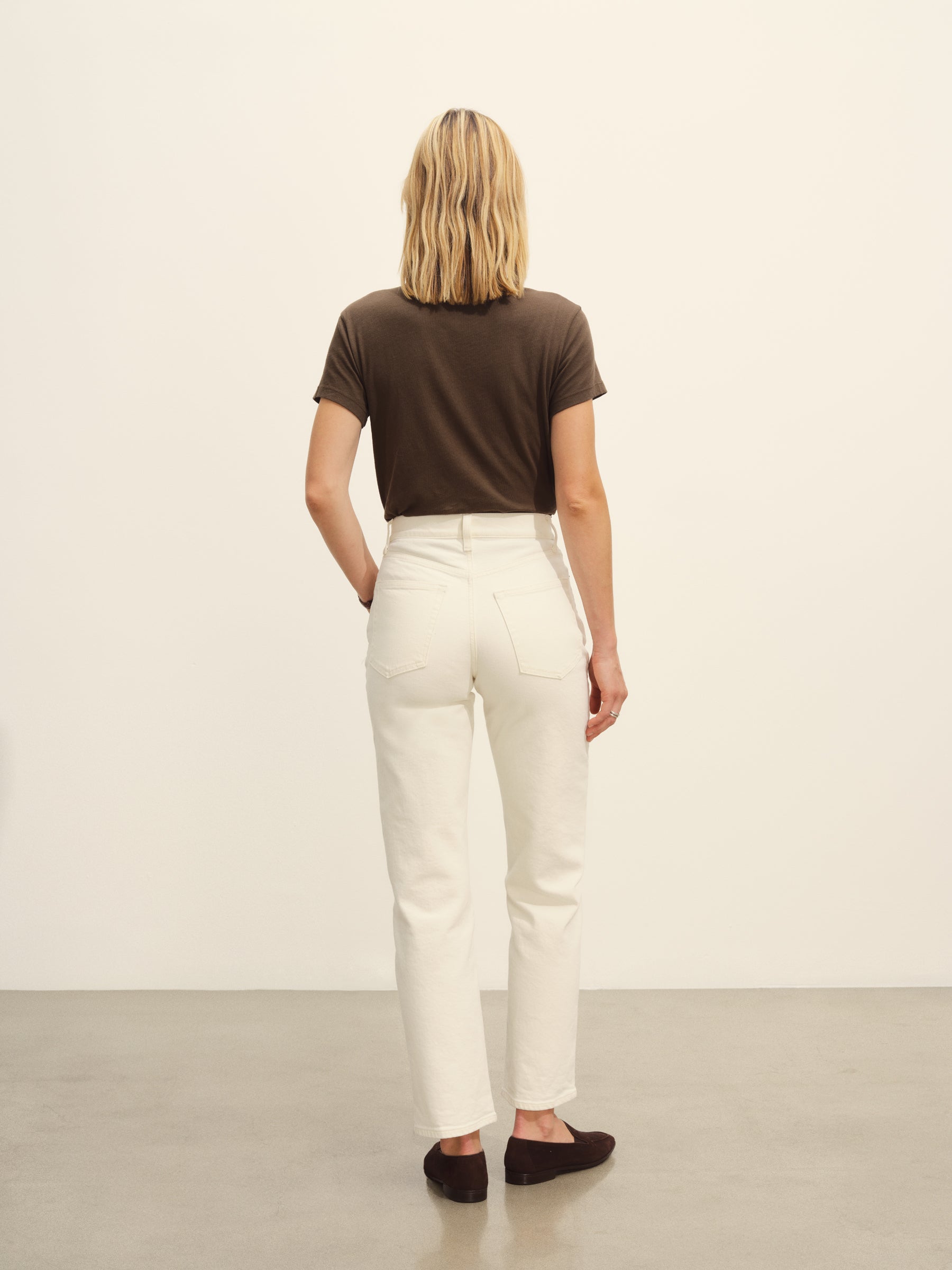 Classic fit short sleeve crewneck tee with a straight hem, cut from 125 GSM cotton with light slub texture. Constructed with self neck binding and ladder stitch detailing at the hems. Garment dyed and washed with softener for a lived in feel.