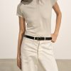 Slim fit ribbed long sleeve tee cut from 295 GSM stretch cotton that holds its shape. 2×2 rib structure—two rows of rib stitch, two rows of jersey stitch—is offset by contrast 1×1 rib at the neck. Constructed with coverstitching throughout and flatlock stitching at the side seams. Garment washed for a lived-in feel.