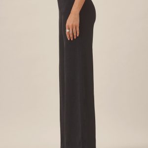 Straight leg, high-waisted 2×2 rib knit pant cut from 295 GSM stretch cotton that holds it shape. Fits comfortably at the waist with a wide elastic waistband with a full length inseam measuring 31 3/4”. Garment washed for a lived-in feel.