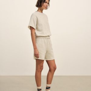 Relaxed crewneck sweatshirt with cut-off sleeves in 290 GSM yarn-dyed cotton French terry with a semi-brushed back. Features a “Dorito” insert at the neckline for shape retention, drop shoulders, and 1×1 ribbing at the collar and waistband. Garment washed for a lived-in feel. Pair it with the Interloop Cut Off Sweatshort to complete the look.