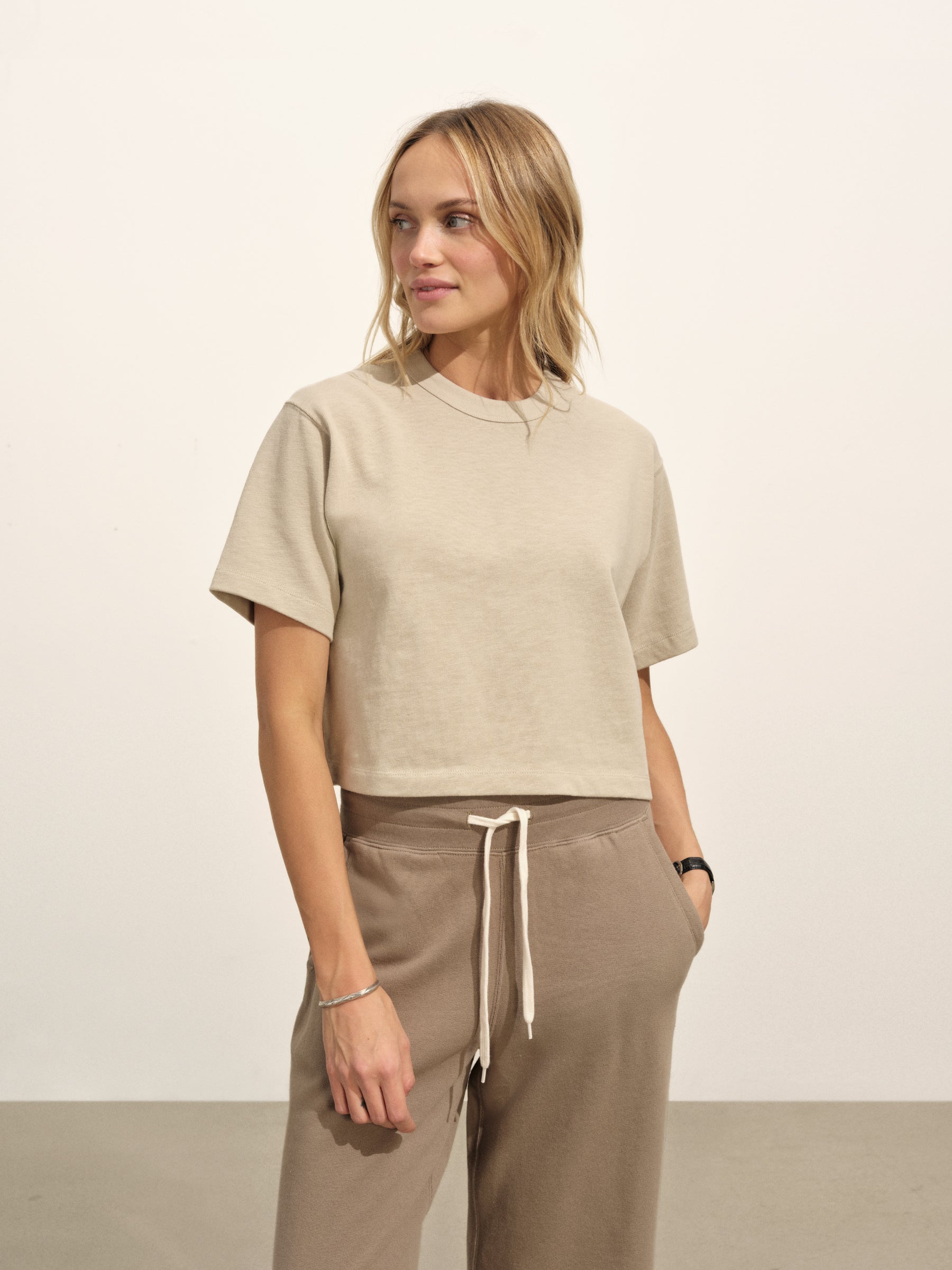Wide leg, high-waisted sweatpants with a 28” inseam. Can be worn at the natural waist or lower for a more relaxed fit. Cut from 290 GSM cotton French terry with a semi-brushed back. Features a wide, ribbed waistband with drawcord for fit adjustments. Constructed with straddle stitching at seams for durability. Garment dyed and washed for a lived-in feel. Pair with our Vintage Overloop Crew.