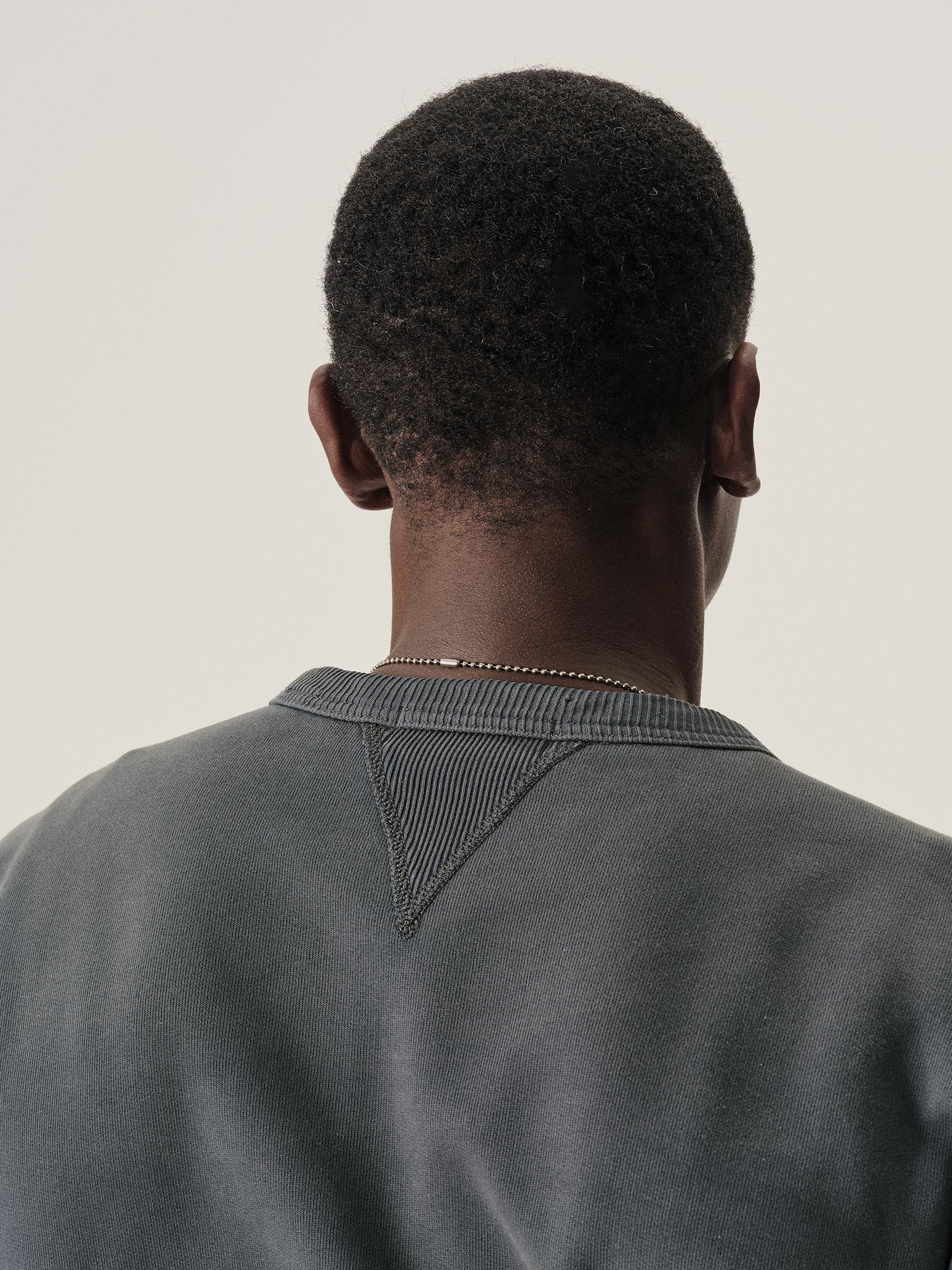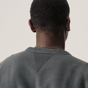 A midcentury-inspired crewneck sweatshirt made from plush, not-too-heavy, not-too-light, welterweight French terry. Features a “V” detailing at the front and back neck opening that was commonly found on sweatshirts from the 1940s and 50s.
