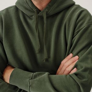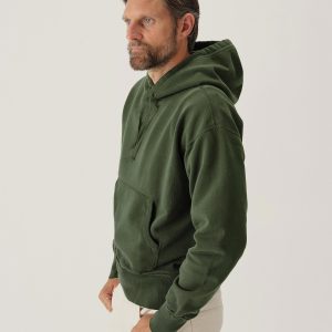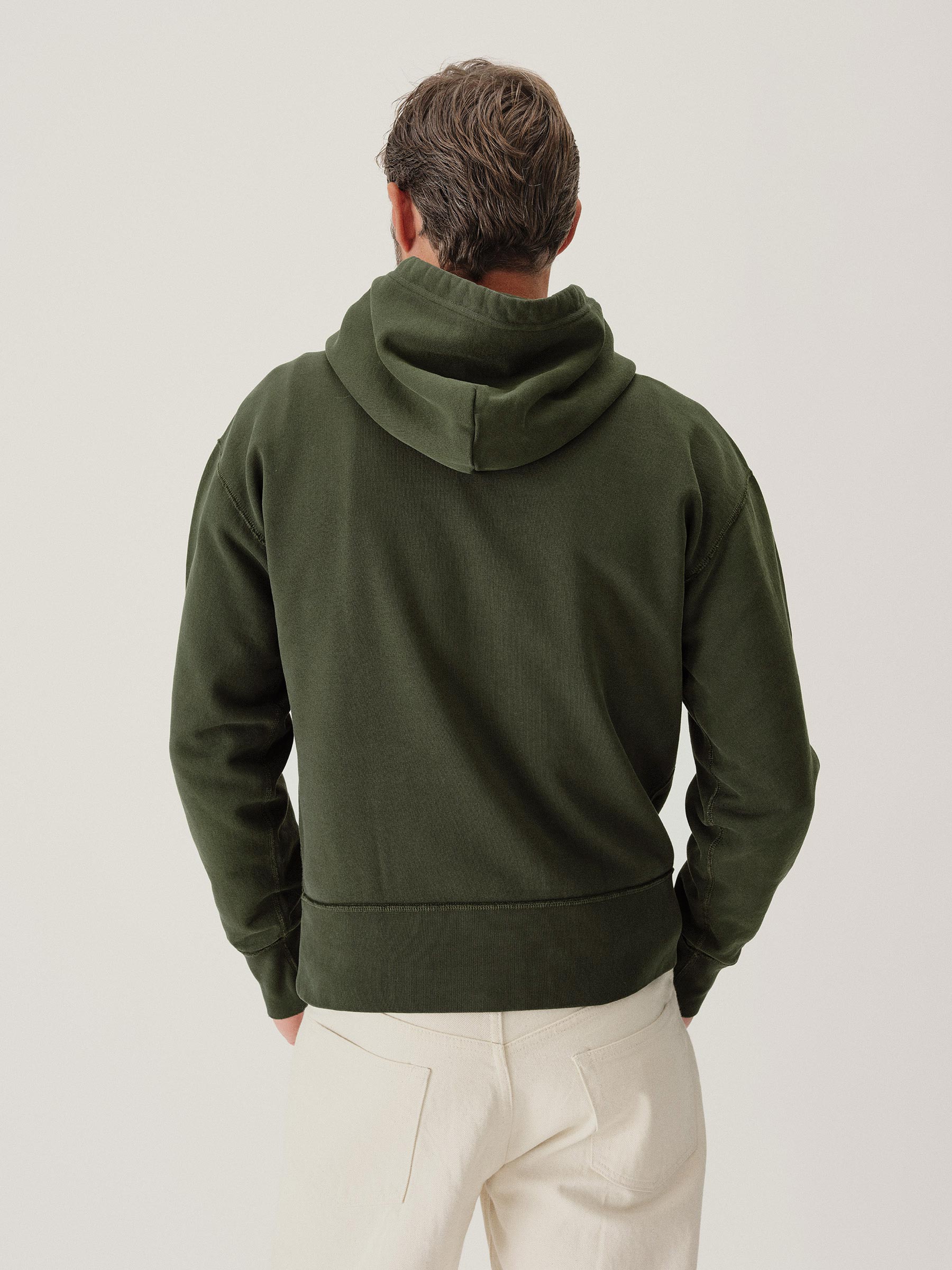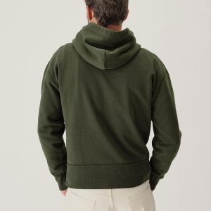 A midcentury-inspired hooded sweatshirt made from plush, not-too-heavy, not-too-light, welterweight French terry. Features a double-layer hood and kangaroo front pocket.