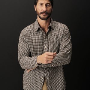 Slim fit long sleeve button-up cut from 4 oz. washed cotton. Details include a button placket, a single spade pocket at the chest, and a box pleat at the back yoke. Constructed with single needle topstitch detailing with double needle stitching at the collar and cuffs.