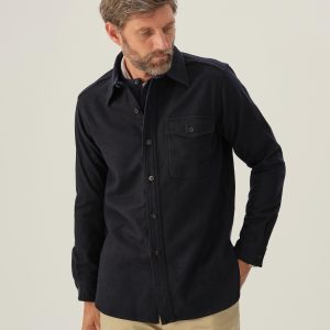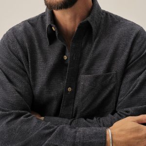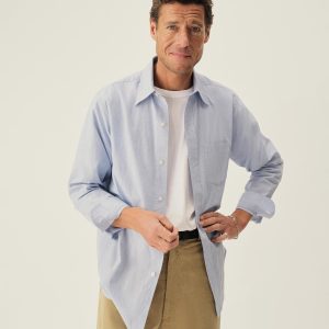 Classic fit short sleeve camp collar button up cut from a mercerized 4 oz. washed cotton. Features a four-button placket with mother of pearl buttons, a single spade chest pocket, and a loop and button closure at the neck. Constructed with clean finished seams. Garment washed with enzymes for a lived-in feel.