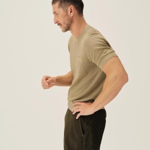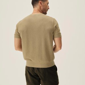 A classic fit tee in a fine knit drop-needle rib construction. Made from 12 gauge yarn-dyed hemp/cotton blend that wicks moisture and breathes easily. Chest pocket with ribbed opening. Finished with a 1×1 rib at collar, cuffs and waistband. A versatile summer layer inspired by vintage rib tees.